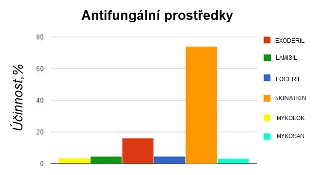 Účinnost přípravku byla prokázána studiemi provedenými naším centrem za účasti dobrovolníků s použitím různých oblíbených prostředků na kúru plísní. Výsledky potvrdily vysokou účinnost Skinatrin: